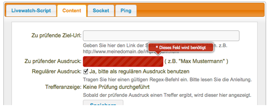 Mit dieser Funktion räumt Livewatch.de Ihnen die Möglichkeit ein, individuell angepasste Scripte zu überwachen.  So ist es z.B. möglich, die Konnektivität Ihrer Datenbank zu prüfen. Sie stellen zum Beispiel ein Script bereit, der bei erfolgreicher Verbindung/Abfrage auf Ihre Datenbank ein einfaches "OK" an den Browser ausgibt. Im Fehlerfall würde diese Meldung nicht kommen.